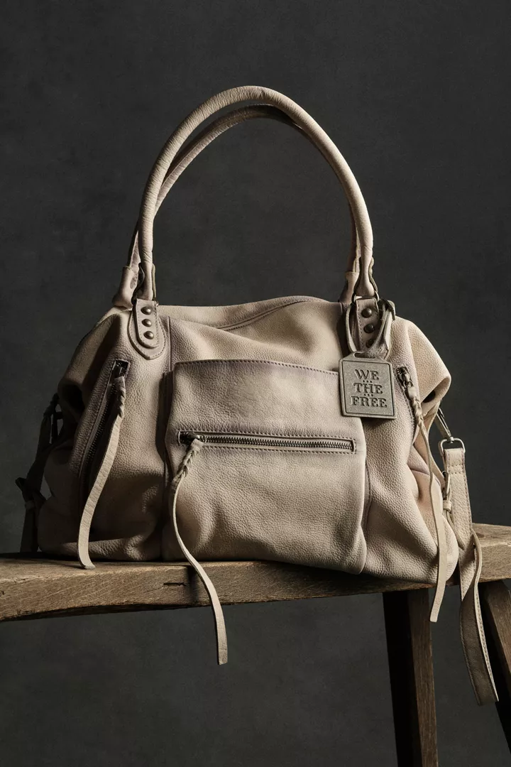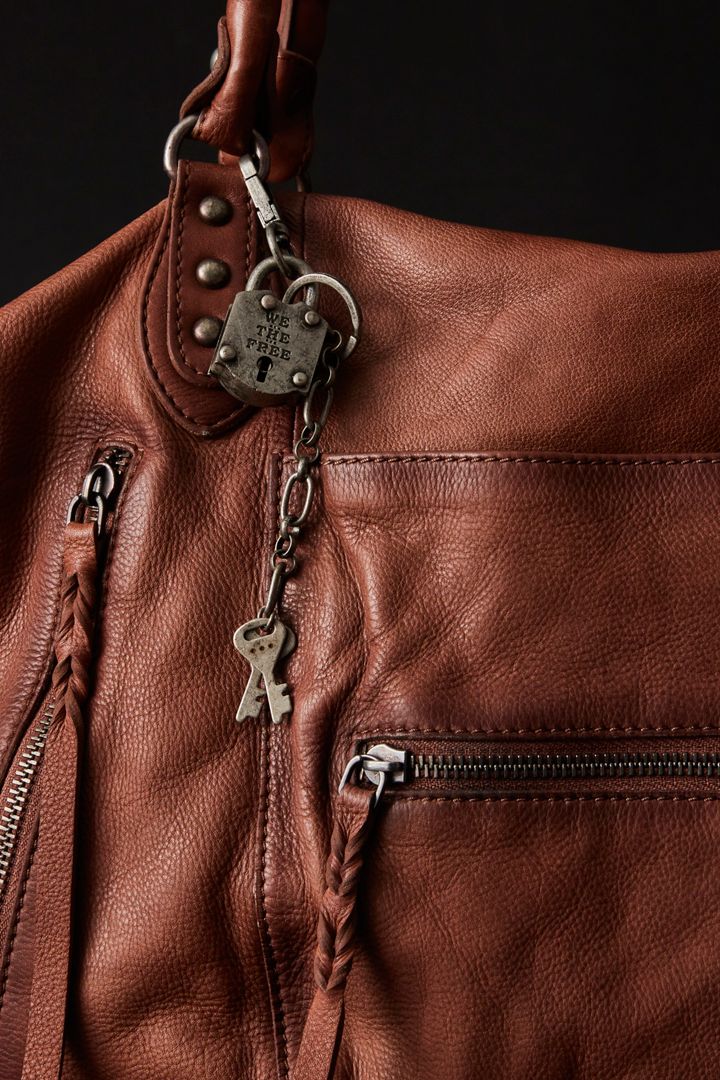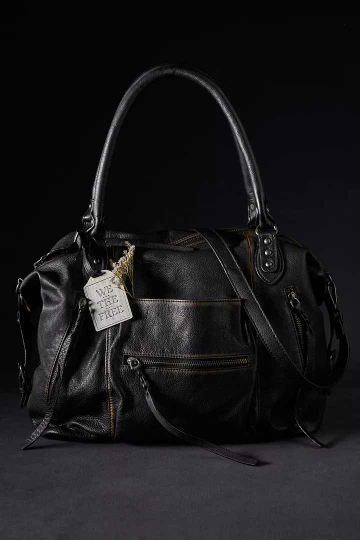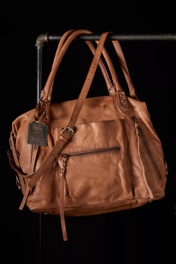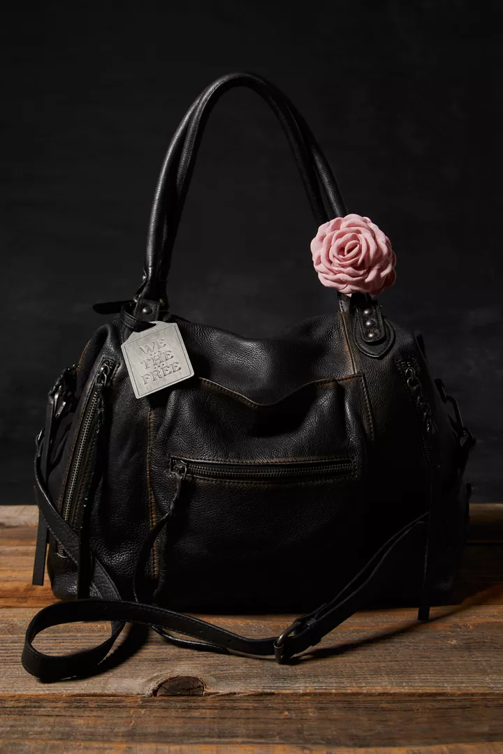Features: Slouchy style, spacious interior, worn leather fabrication, exterior zipper compartments, exterior and interior pockets, buckle details, two top handles, detachable and adjustable shoulder strap, zipper closure, branded tag