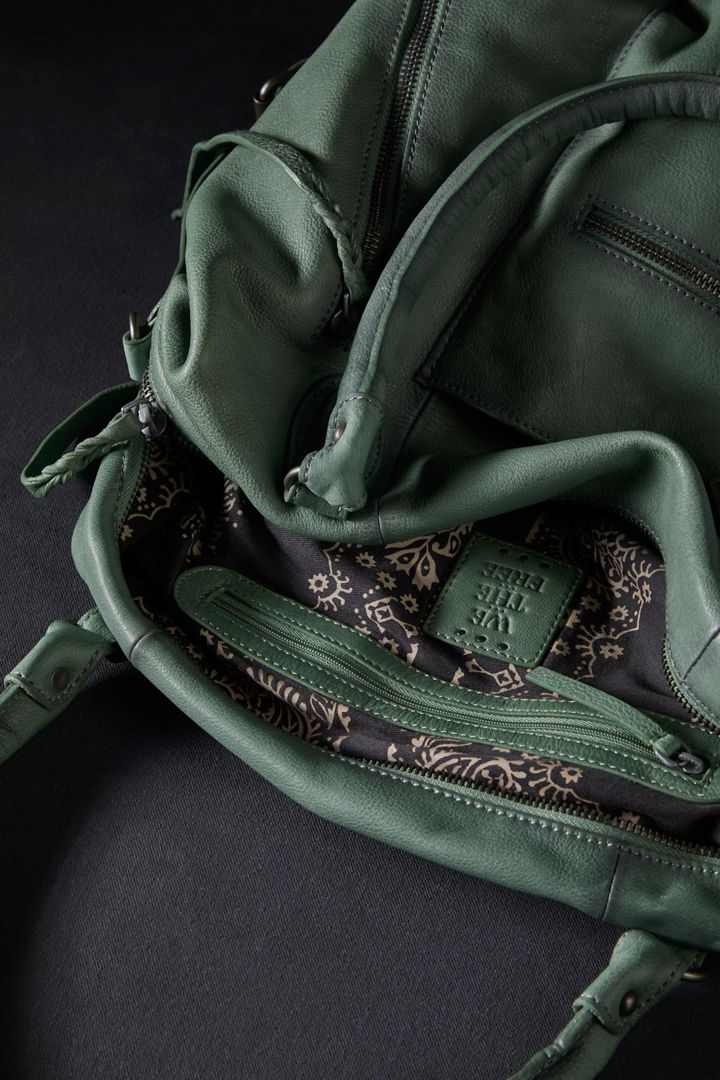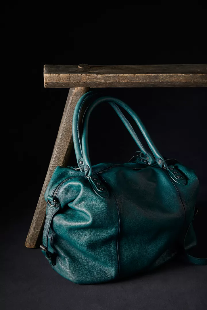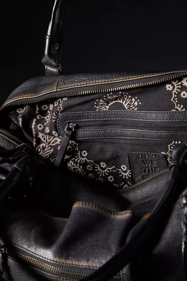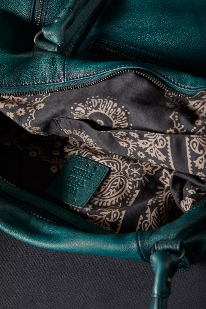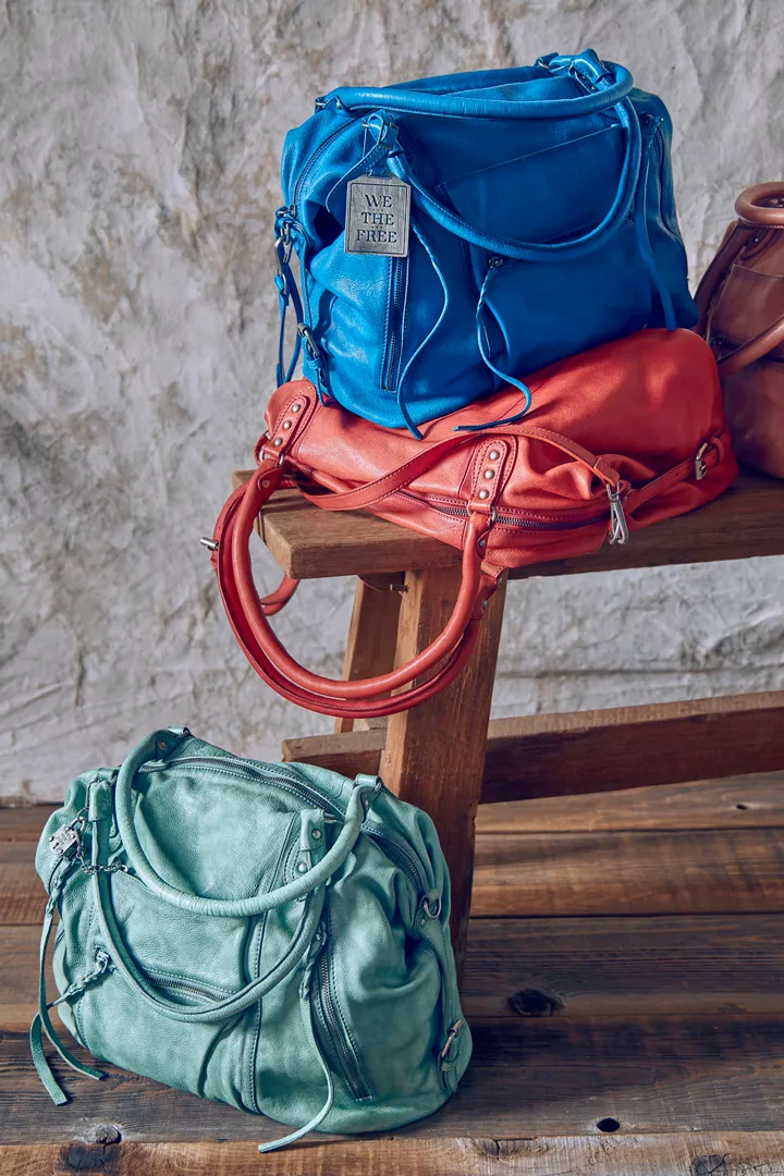 Features: Slouchy style, spacious interior, worn leather fabrication, exterior zipper compartments, exterior and interior pockets, buckle details, two top handles, detachable and adjustable shoulder strap, zipper closure, branded tag